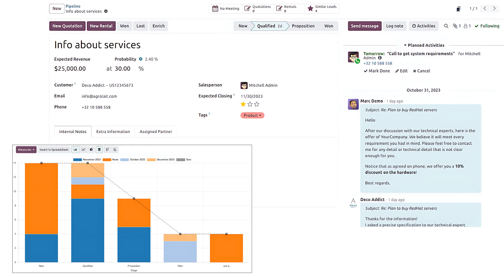 - Lên lịch hoạt động: Theo dõi các báo giá và đơn hàng, lên lịch các hoạt động như cuộc gọi, gửi email, họp trao đổi và nhận các thông báo khác.