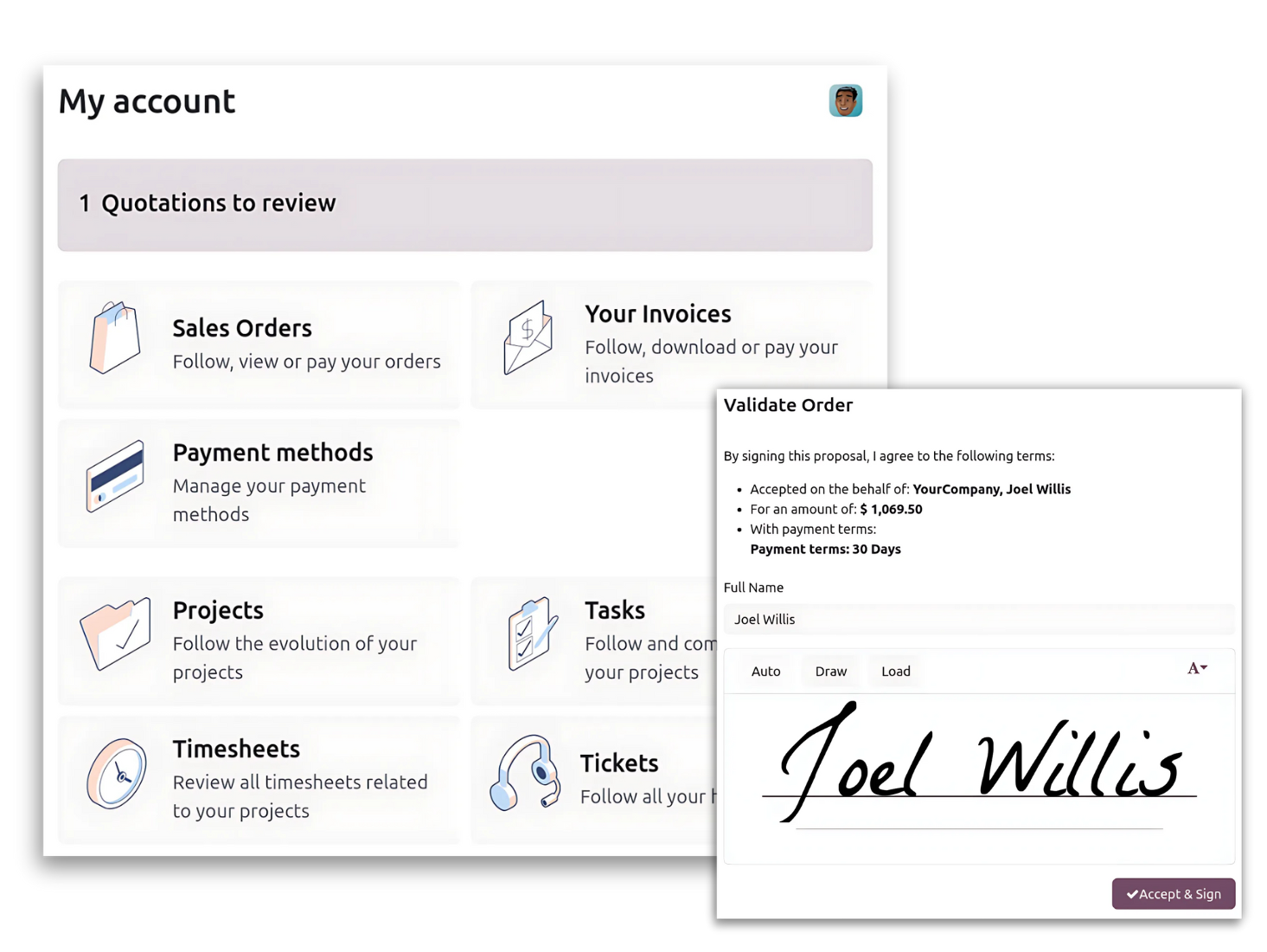 - Chữ ký điện tử: Dễ dàng ký trên NDA, hợp đồng hoặc bất kỳ tài liệu PDF nào với ứng dụng Odoo Chữ ký.