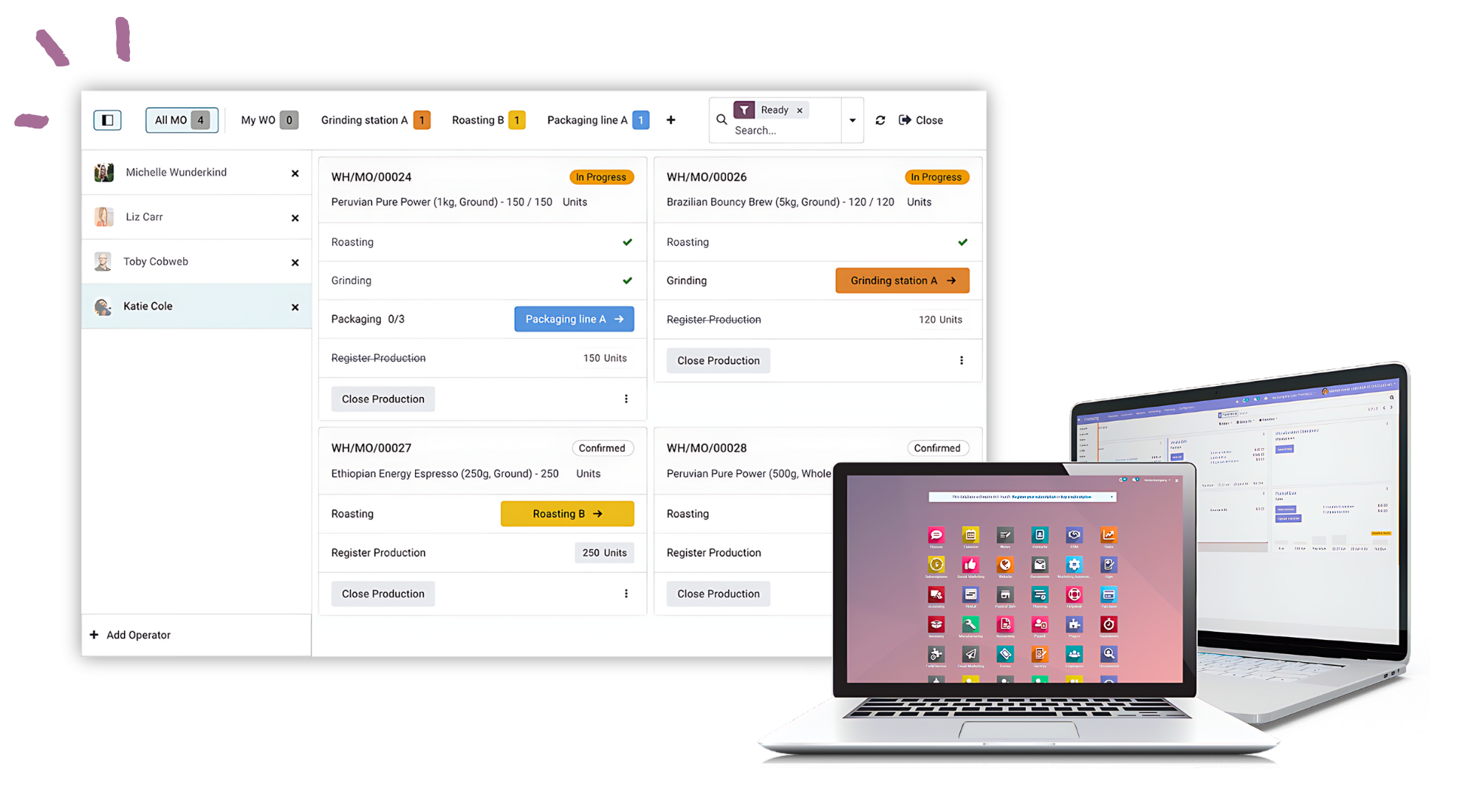 - Công đoạn/Lệnh làm việc (Work Order): Quản lý tất cả quy trình từ công đoạn sản xuất các thành phần cần thiết đến công đoạn lắp ráp hoàn thiện sản phẩm.