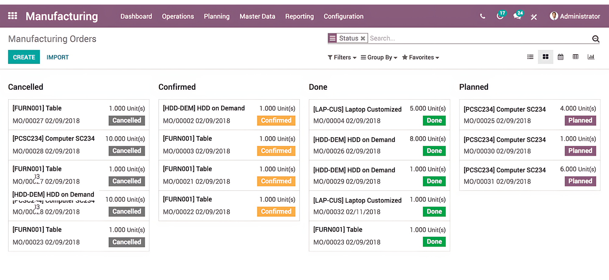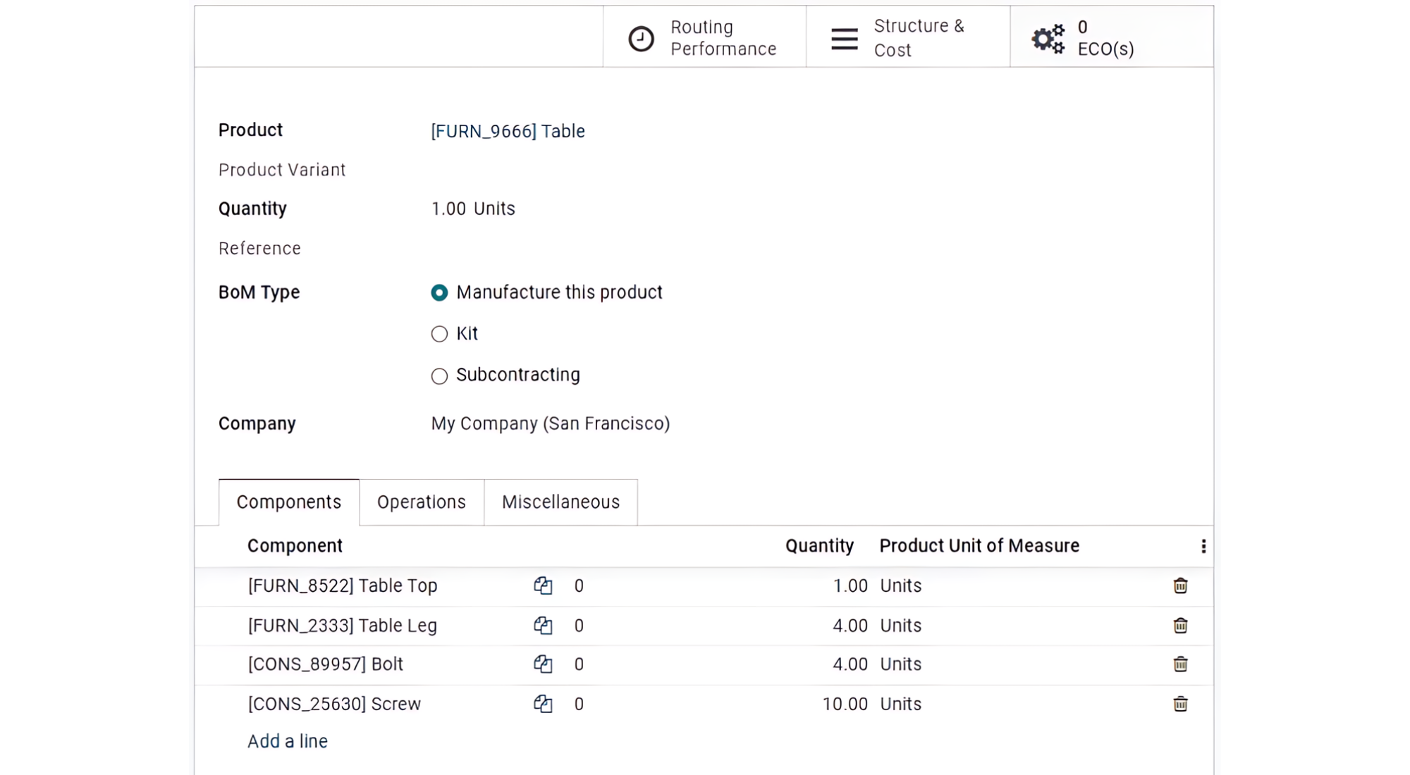- Lệnh sản xuất (Manufacturing Order): Quản lý sản phẩm bao gồm trong cả dây chuyền lắp ráp và lắp ráp thủ công.