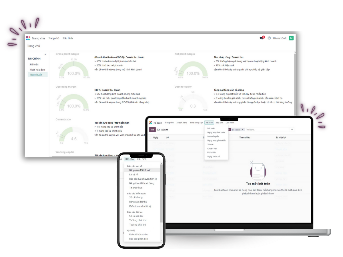 • Báo cáo tài chính theo thời gian thực, dễ dàng tùy chỉnh và kiểm toán.