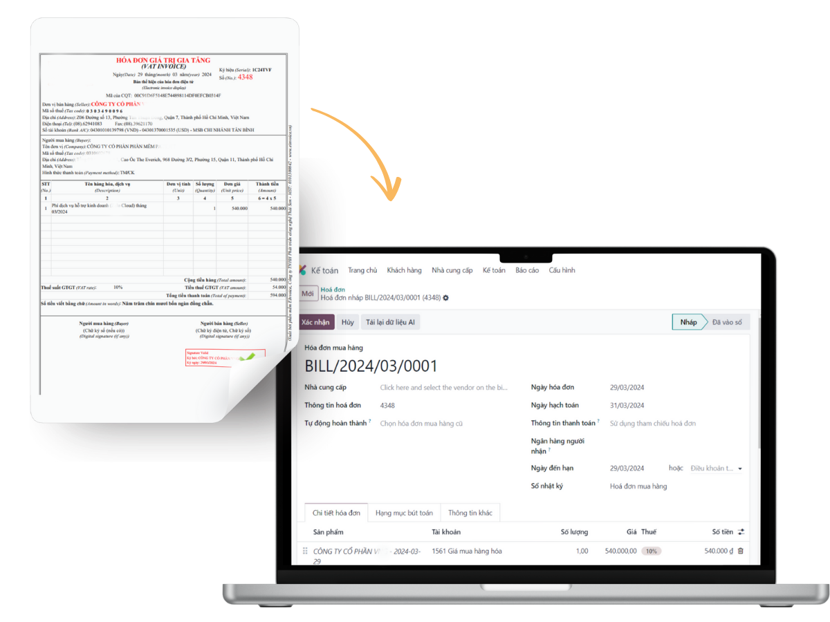 • Ghi nhận hóa đơn nhà cung cấp, quản lý thanh toán và tự động hóa theo dõi.